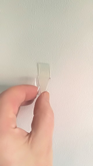Przykleiłam najpierw plasterek do ściany, docisnęłam, kolejno haczyk i gotowe. Kiedy chcemy usunąć haczyk, wystarczy pociągnąć za wystający „języczek” plasterka i haczyk można ponownie wykorzystać.