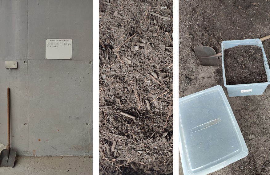 Na głównym zdjęciu, macie to samo ujęcie łopaty z opisem kompostu. Dwa tygodnie później pojawiły się też rękawiczki. Polecam mieć swoje, ale miło.