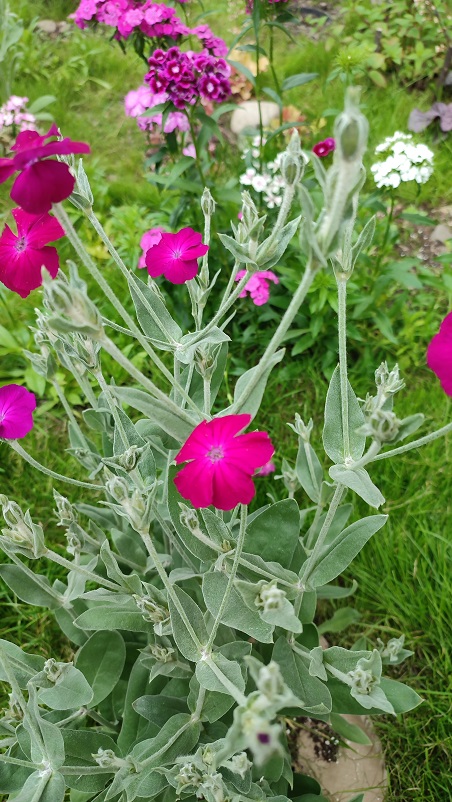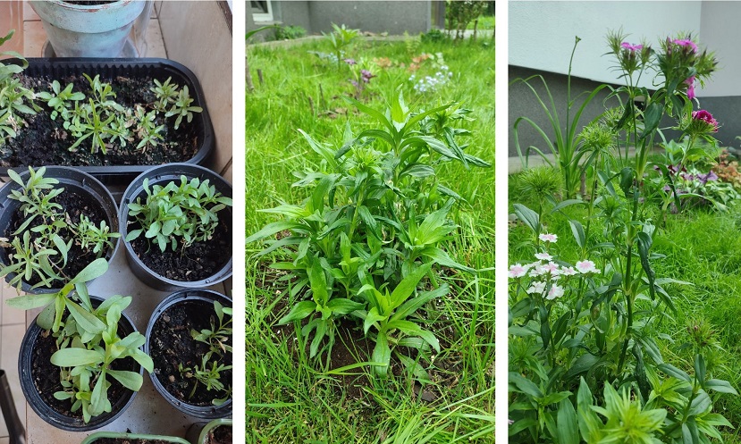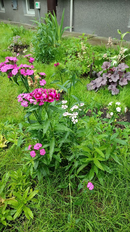 • Spora część roślin, to rośliny dwuletnie, czyli wysiewane latem tego roku, a zakwitają dopiero w  kolejnym. Przykładowo na zdjęciu poniżej – goździki brodate. Wysiane w lipcu zeszłego roku. Posadzone we wrześniu do gruntu, a w tym roku już pięknie kwitną. Całkiem możliwe, że zostaną na dłużej, ale na wszelki wypadek już mam wysiane kolejne.