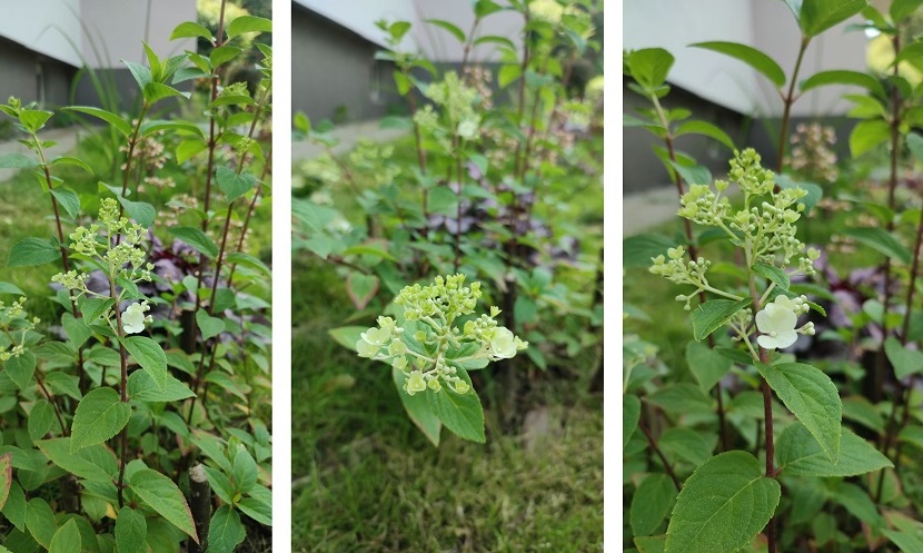 Ja bym drzewa bliżej niż kilka metrów od bloku, nie posadziła. Dużego krzewu także. Nawet, jeśli dzisiaj jest malutki ;). Za to mam dwa krzewy przed oknem, bez zgody. Posadziłam je wiedząc, że moje hortensje dharuma ( 2szt.), są odmianą karłowatą.