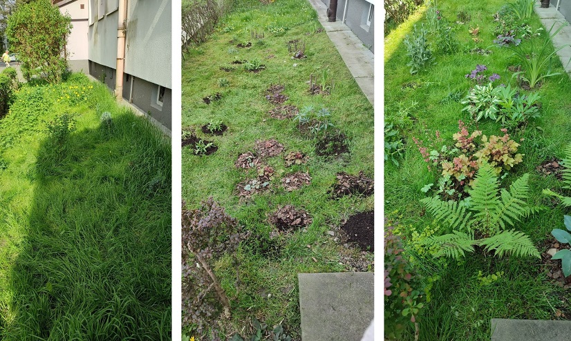Zacznijmy od początku, bo to że masz zryw, niekoniecznie będzie skutkowało spektakularnymi efektami. Nie ma sensu się rujnować, bo jak już ustaliliśmy, to nie jest tylko Twój teren. Przyjdą kosiarze, skoszą i tyle było z Twoich roślinek. Wiem, bo na przełomie kilku sezonów miałam zrywy, które kończyły się płaczem. Moi kosiarze oraz inni podwykonawcy Spółdzielni, mają już na koncie 6szt. hortensji, 1szt. lilaka Meyera, 3szt. cyprysików, bratki oraz ostatnio paproć.