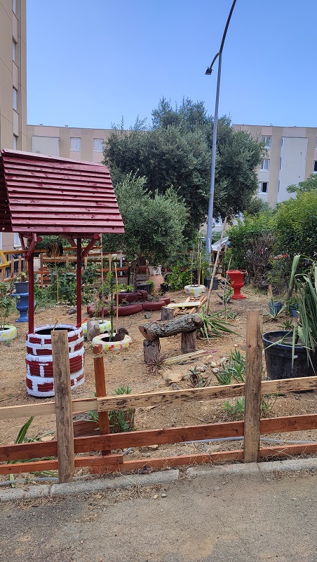 Poniżej zdjęcie ogródka na blokowisku, który widziałam na Korsyce. Fajnie, że ktoś miał chęci, wykorzystał opony… Czy każdemu ta aranżacja się spodoba? Myślę, że takie indywidualne zapędy twórcze lepiej powściągnąć do momentu, kiedy już mamy własną działkę i można szaleć.