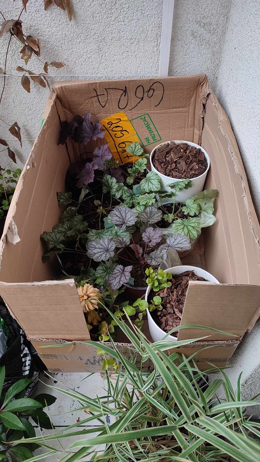 • Zakupy poza szczytem sezonu – Pod koniec listopada, czyli w mało ogrodniczym sezonie, również na OLX, kupiłam sadzonki żurawek i ciemiernika. Do spółki z wspomnianymi dziewczynami, bo cena, choć i tak bardzo przystępna, zależała od ilości. Ciemierniki po 15zł, a żurawki po 6-7zł. Ciemiernik posadziłam w grudniu, a żurawki połowie kwietnia 2025r. Bardzo ładnie zimowały w kartonie na balkonie.