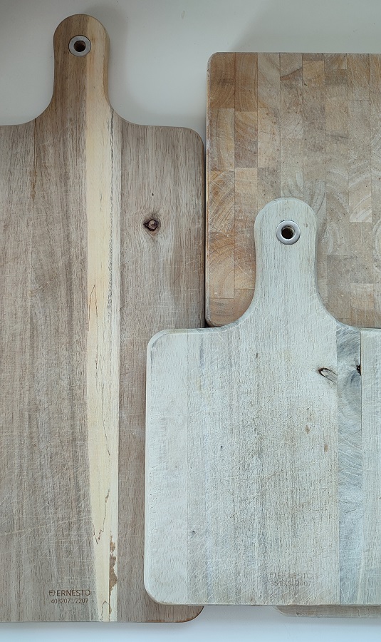 Nie zamierzam walczyć z tymi, którzy do zmywarki deski drewniane wkładają. Czy deski drewniane umyte w zmywarce są czyste? Wątpię. Pomijając, że się rozwarstwiają, a te klejone – pękają. Nie chcę też zmuszać nikogo do dbania o deski. Daję Wam tylko propozycję jak zadbać o drewniane deski kuchenne. Bo, że zadbane deski mogą być jednocześnie dekoracją w kuchni, to chyba nie muszę nikogo przekonywać.