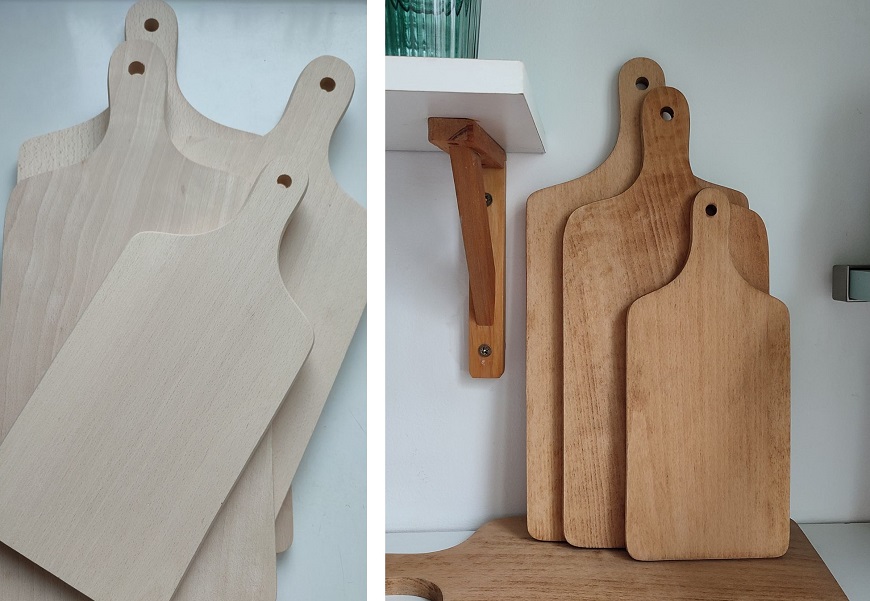 Ja mam klasyczne, z litego drewna bukowego. Kupione 3 lata temu na allegro. Za te cztery deski zapłaciłam 49zł. Nie jest to w żaden sposób współpraca z tym, co warto podkreślić, polskim producentem, ale polecam (wesola-zyrafa_pl), bo kupiłam już od nich sporo drewnianych przedmiotów. W tym kieliszki na jajka.