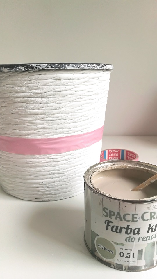 - Rozcieńczoną farbą kredową pomaluj pojemniki. Wystarczy jedna warstwa plus ewentualne poprawki.