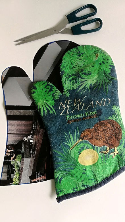 Podstawa to szablon. Możecie użyć starej rękawicy kuchennej i odrysować od niej szablon na papierze.