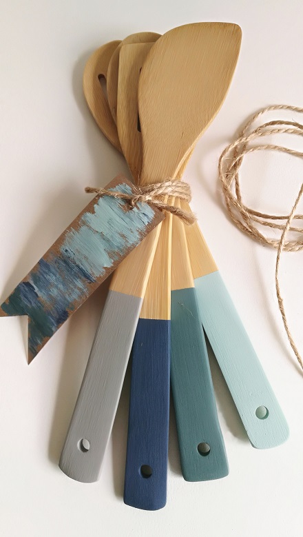 Nie będę Was namawiać na struganie łyżek z drewna ;). Proponuję za to pomalować drewniany zestaw kuchenny, który z deskami już będzie oryginalnym prezentem. To potrafi każdy. Wystarczy tylko wybrać kolory. Jeśli do tego potraficie szyć, rękawica będzie super dopełnieniem kuchennego kompletu.